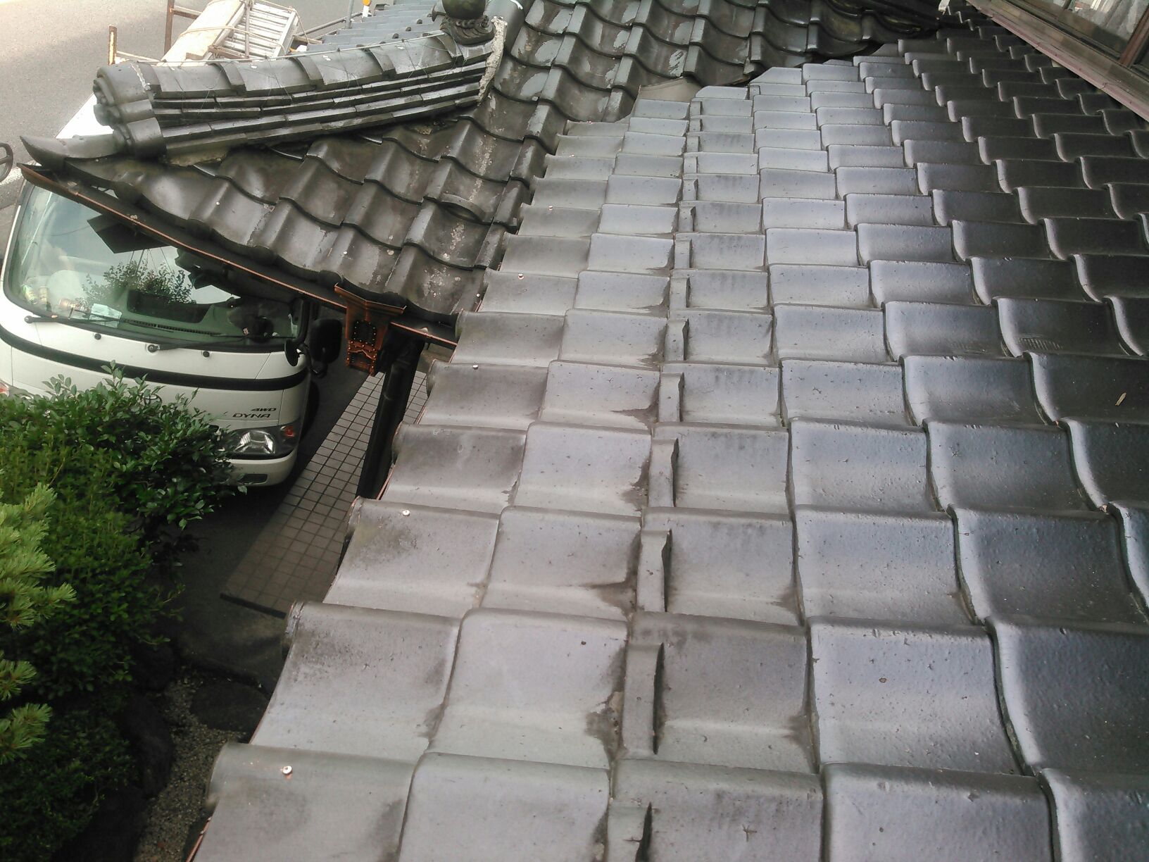 道路に面した側は瓦が全体にずれてきているので、差し替えと葺き直しをし、ビス固定を。全体の補強と隣家との間が狭く、雪害で屋根が傷んでいるので、そちらも修理もご提案しました。 |