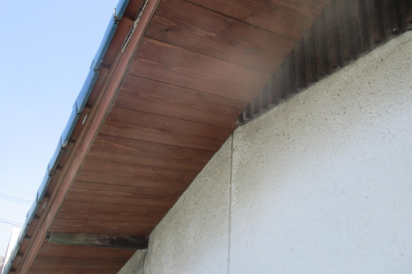 | 軒天もご希望で貼らせていただきました。防腐剤を施した板を張り付けてあります。 | 棟も積み直し、針金でしっかりと固定し直しました。 |