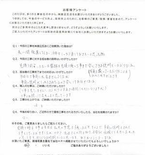 | 見積前にいただいた電話も、見積後から工事まで、安心できる説明をいただけました | |